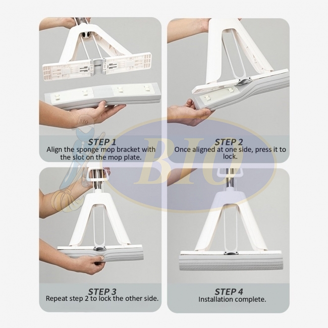 3. Usage Precautions: Ensure the mop plate and sponge are securely attached before use. Always fully soften the sponge before wringing to avoid damage. Do not force the mechanism if sponge is hard.