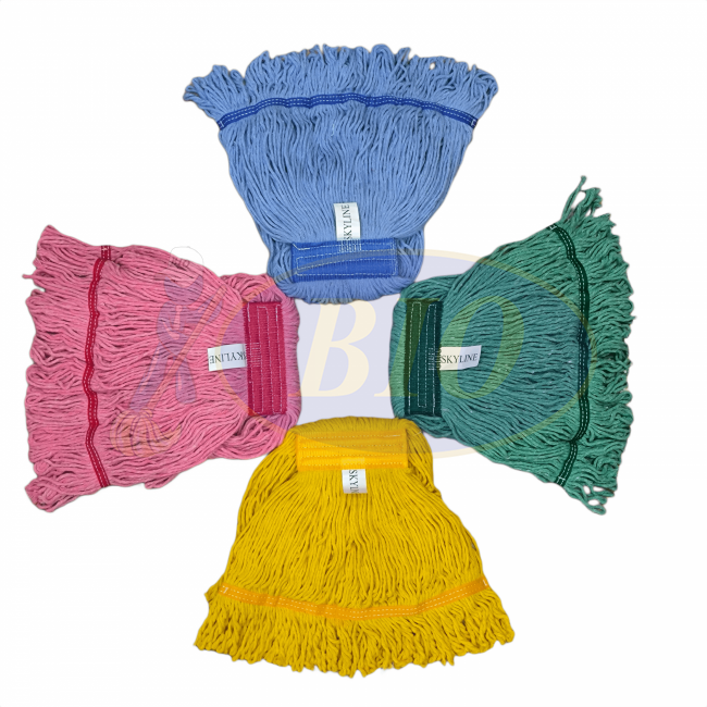 The Full Colour Cotton Kentucky Mop Refill with Colour Ribbon is a high-absorbency, looped-end mop designed for wet mopping in commercial spaces. Made from durable cotton blended yarn and reinforced with stitched colour ribbons (Red, Blue, Yellow, Green), it supports hygiene protocols by reducing cross-contamination. Compatible with standard handles, especially lightweight aluminium ones preferred by janitorial teams. Ideal for cleaning hard floors in hospitals, schools, kitchens, and industrial settings.